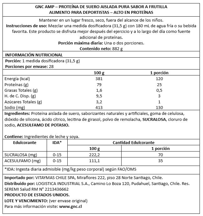 GNC AMP PURE ISOLATE FRUTILLA 28 SERVIDAS